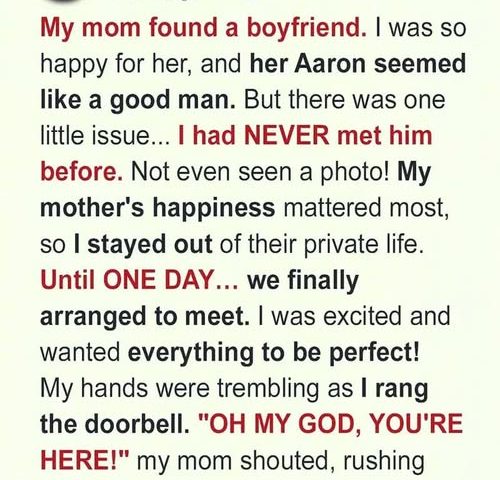 I was excited and wanted everything to be perfect! My hands were trembling as I rang the doorbell. “OH MY GOD, YOU’RE HERE!” my mom shouted, rushing to open the door. But the moment I saw her man, I froze… He was my