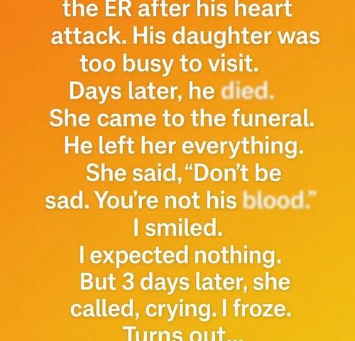 Át the time his belongings were discussed, she reminded me, kindly but clearly, that I wasn’t his biological family. Everything had been left to her. I accepted that without bitterness. I felt no sense of entitlement. My place in his life had never been about inheritance. The grief itself was burden enough.