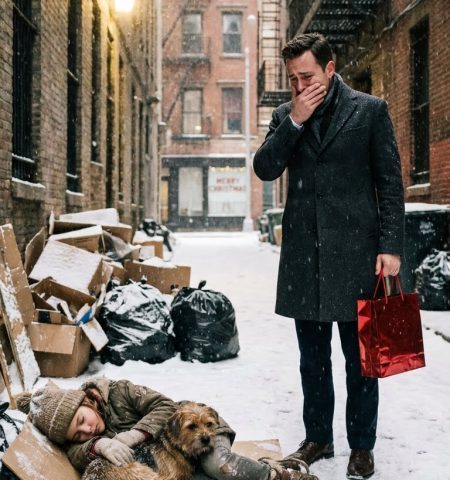 Snow was coming down hard over New York, wrapping the cold, merciless streets in a blanket of white. But behind a high-end restaurant, in a narrow alley piled with ripped boxes and torn garbage bags, a little girl was sleeping on the frozen ground, curled up around a shivering brown dog.