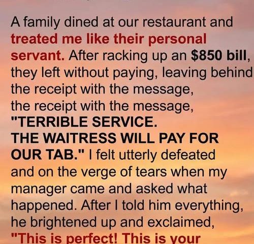 But when I returned with the check, the table was empty. Left behind was a note blaming me for the service and implying I was responsible for the unpaid $850 bill.