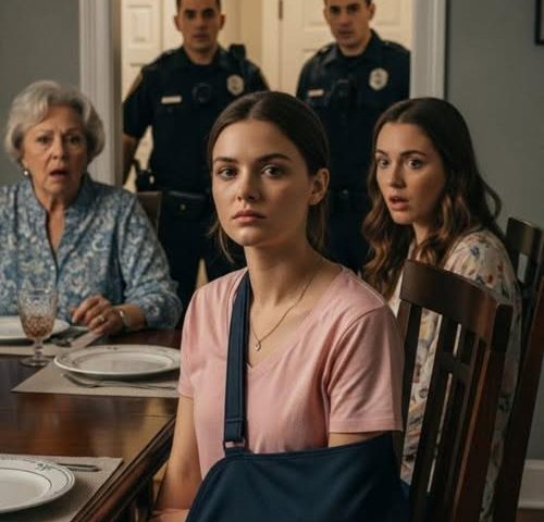 That evening at the family dinner, the house smelled of roast beef, cheap wine, and a kind of politeness that felt forced. I — Emily Carter — sat quietly at the end of the table, my arm in a cast after I had slipped on the stairs a couple of days earlier.