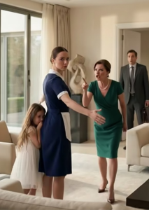 “It’s just… Maria,” she said, pointing to the maid who was still on the floor. “She provoked me! She was turning the girl against me! Sofia spilled juice on me on purpose to ruin my dress!”