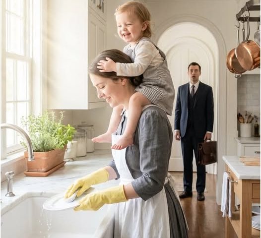 There was Ava. His silent, grief-buried daughter. Sitting on the maid’s shoulders, giggling as they washed dishes together. Not just smiling—laughing. A bright, musical laugh he had not heard since the night everything fell apart.