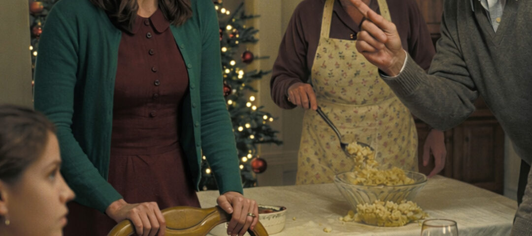 The lights on the tree flickered, the silver ornaments trembling as if they could feel what was coming. My mom froze with a serving spoon in her hand, mashed potatoes sliding off in a slow, pale avalanche onto the good tablecloth. Caroline’s husband reached for the gravy like nothing had happened.