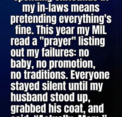 That evening, when my mother-in-law suggested we stop for a prayer, I relaxed slightly. I expected something short and familiar—safe words everyone could nod along to. Instead, her voice lingered, stretching the moment. The prayer slowly turned into something else entirely. She spoke about hopes for “necessary changes,” about careers moving in the right direction, about families becoming what they were “meant” to be, about traditions being brought back to where they belonged.