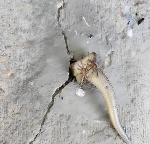 I walked closer, already trembling. And then I realized it was stuck in a crack in the wall. No way in, no way out. Then the realization dawned—it was a skink. A real lizard. Alive.