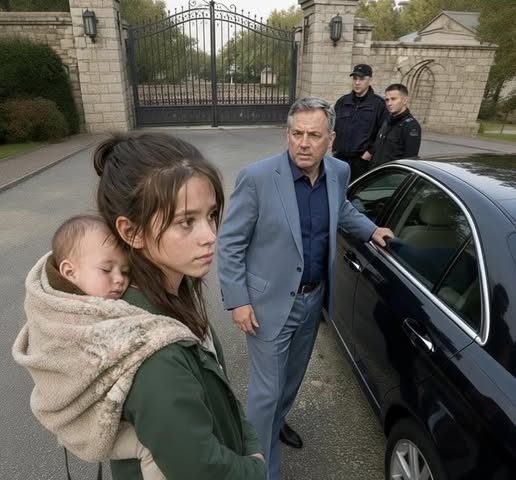 The girl startled. She instinctively shifted, tightening the cloth that secured the baby, as though preparing to be turned away or escorted off the property. Her gaze flicked toward the guards, then cautiously returned to Victor.