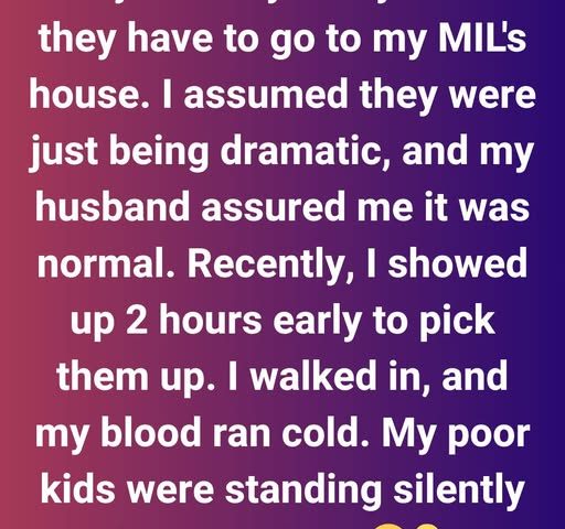 Recently, I showed up two hours early to pick them up. The moment I stepped inside, my blood ran cold. My poor kids were standing silently in the dim hallway, facing the wall. They didn’t even turn around when the door opened. My heart pounded in my chest as I rushed over to them.