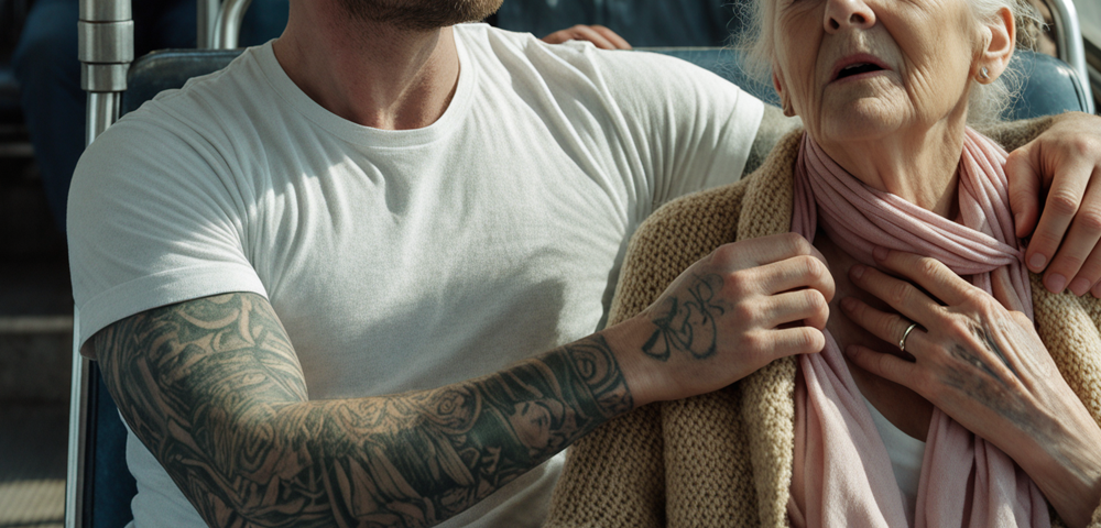 The young man quickly rushed to the grandmother’s side. Calm, confident, without a hint of panic, he removed her thick scarf, unbuttoned the top of her sweater, and helped her breathe easier.