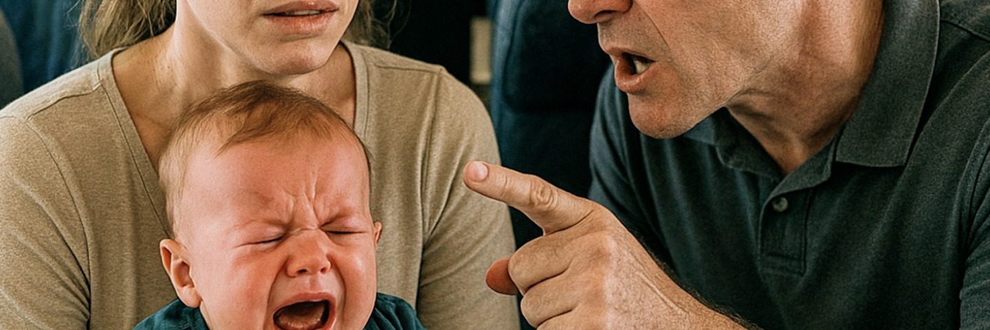 “NO!” He stood up abruptly, moving so suddenly it startled me. He gestured toward the back of the plane with an exaggerated sweep of his arm, making sure his performance had an audience. “You know what? Just take him to the bathroom. Lock yourself in there with your screaming kid and stay there for the rest of the flight if you have to. Nobody else should have to put up with this.”