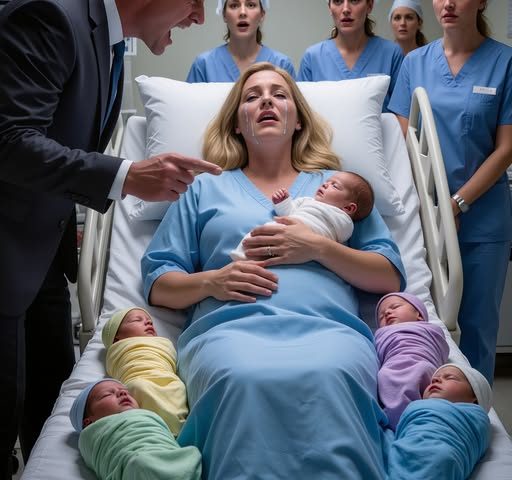 Anna lay exhausted, trembling from hours of labor, her skin damp with sweat. In her arms rested five tiny newborns, each wrapped in soft pastel blankets. Triplets would have amazed the hospital staff, but quintuplets? That was beyond rare. It should have been a miracle. Yet no one in the room looked at them with wonder.