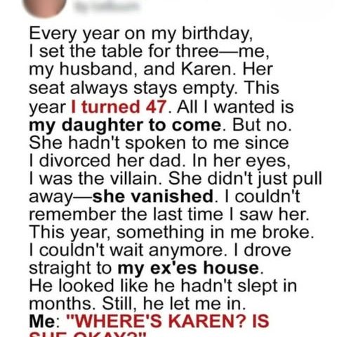 My 47th birthday passed in near silence just three plates on the table, one seat left untouched, a quiet echo of the daughter I hadn’t spoken to in two years.