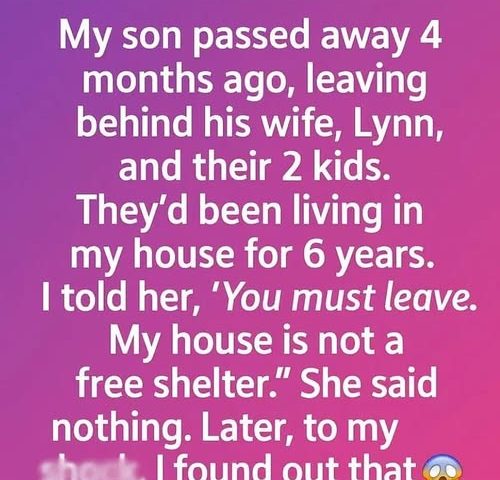 Days later, I found a letter my son had written before his d3ath. In it, he asked Lynn to stay in our home if anything ever happened to him and he wanted his family surrounded by love and familiarity, not loneliness. Reading those words shattered me. I realized I had not only betrayed Lynn’s trust but also gone against my son’s final wish.
