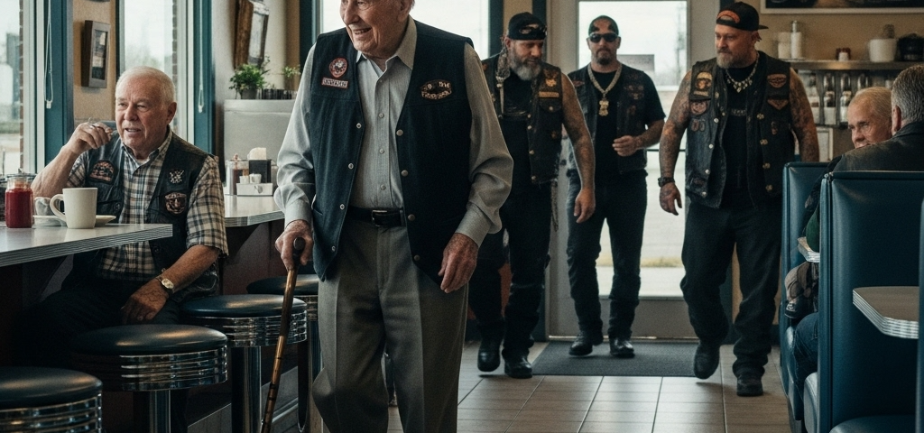 The Iron Hawks surrounded the diner, calm but imposing. The veteran who’d saluted Walter stepped closer to the young bikers. “I think it’s time you boys cleaned up this mess, apologized to the lady, and left before you embarrass yourselves further.”