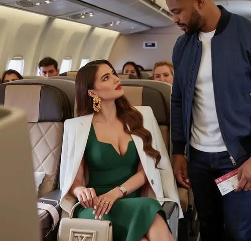 Marcus stood, slightly stooped, beneath the cramped cabin ceiling. His simple hoodie and worn-out jeans screamed “coach” to anyone who glanced his way too fast. Meanwhile, her diamond bracelet sparkled under the soft, curated light of first class as she shifted comfortably in the leather seat that still held his warmth.