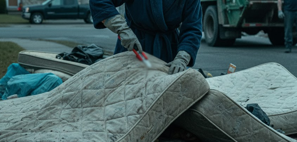 I searched like a woman possessed — climbing over piles of discarded furniture, my shoes sinking into layers of waste and forgotten history. And then, almost hidden beneath a heap of black garbage bags, I saw it: our blue-and-white striped mattress.