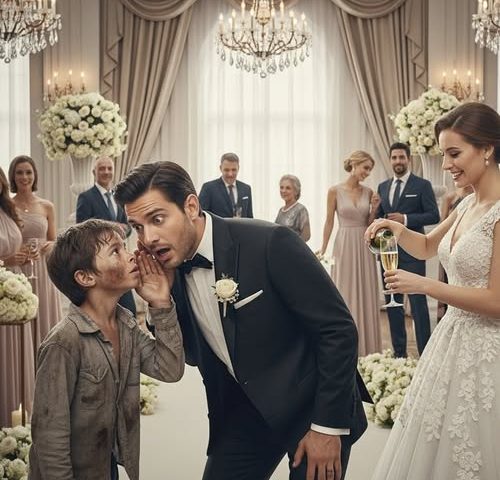 It happened in the space between a laugh and the next photograph. Daniel turned toward the floor-to-ceiling windows and noticed a boy outside—thin jacket, torn shoes, eyes too old for his years. The child wasn’t watching the food or the crown of sugar roses on the cake. He was staring at a framed portrait of the newlyweds on a nearby easel.