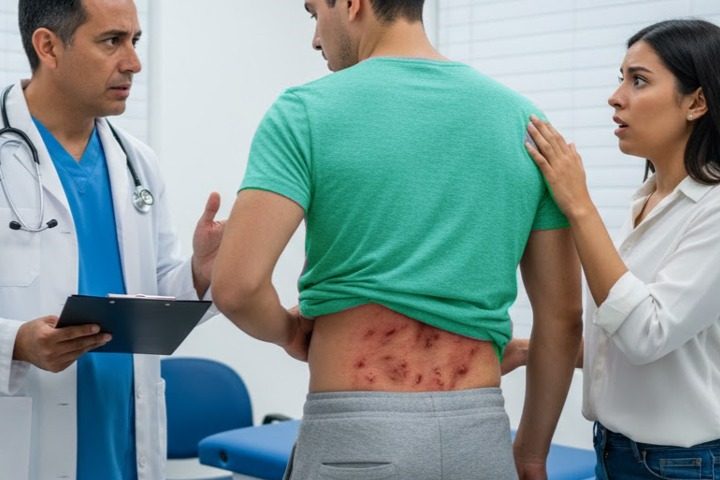 There were small red bumps across his back. At first, there were just a few. But as the days went on, more appeared — dozens of them, grouped together in strange, symmetrical patterns. They looked almost like clusters of insect eggs embedded under his skin.