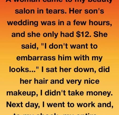 In a voice barely above a whisper, she said her son was getting married in just a few hours—and all she had was twelve dollars. There was something in her quiet desperation that pierced me deeply; her face carried the weight of years of worry, and her hands told stories of hard labor and sacrifice.