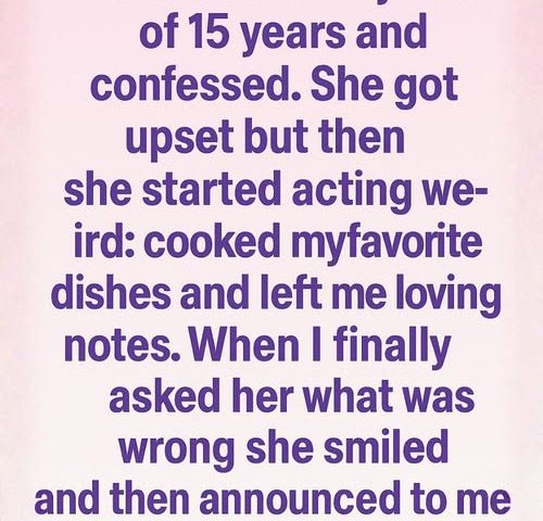 In the days that followed, she started to act with a strange tenderness. She cooked my favorite dinners, left small notes by my coffee, asked softly if I needed anything before leaving for work.