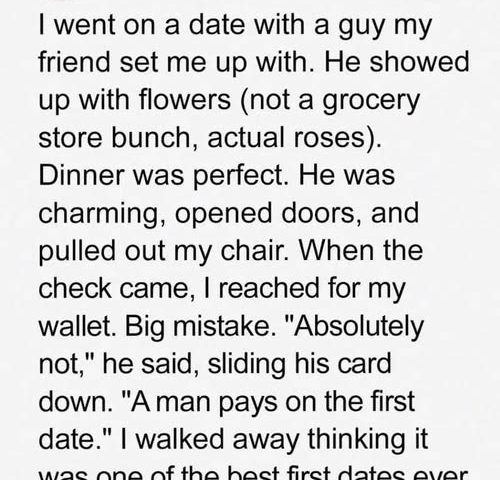 As my best friend Mia set me up on a blind date, I was unsure what to expect. To my surprise, Eric showed up with a bouquet of roses and a small, thoughtful gift — a keychain with my initial. At dinner, he was polite, attentive, and easy to talk to. As the bill arrived, I offered to pay my share, yet he insisted on treating me. I went home feeling happy and thinking the evening had gone wonderfully.