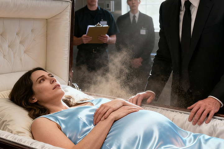 When they lifted the lid, David leaned in for a final look. That’s when he saw it — a faint but unmistakable movement beneath Emily’s dress. Her belly had shifted. For a second, he thought it was just heat or his imagination. But then it moved again — stronger this time.
