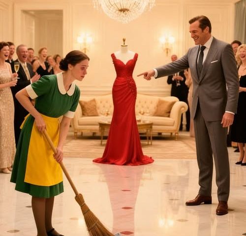 Amid laughter and raised glasses, a striking woman appeared at the grand entrance. The crowd glanced her way, and everything paused. Clara stood there wearing the same red dress that had once been a symbol of her embarrassment but now radiated power. Her hair was neatly gathered, her posture graceful, her expression calm- no trace of the timid maid remained.