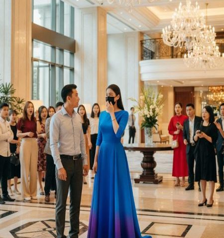 The hotel lobby was dazzling. From afar, I spotted Huy — tall, confident in his black suit — surrounded by colleagues. Beside him stood a young woman in a striking red dress, her eyes shining at him.