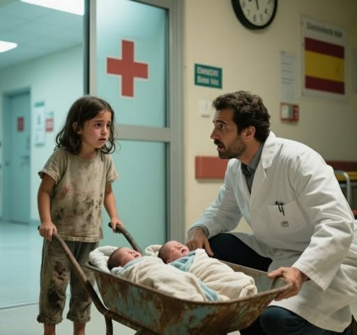 When the automatic doors burst open that morning, the triage nurse froze. A girl — no more than seven — was pushing a rusted wheelbarrow through the doorway. Inside, wrapped in a thin blanket, were two newborns, their faces pale but breathing.