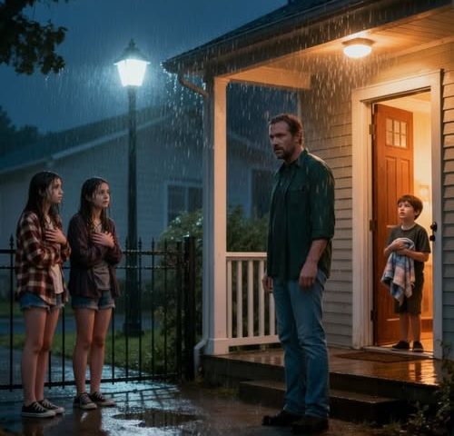 Just as he reached to lock their door, Daniel spotted two figures near the gate. Two teenage girls about sixteen—stood beneath a flickering streetlamp, soaked through and trembling. They were identical, clearly twins.