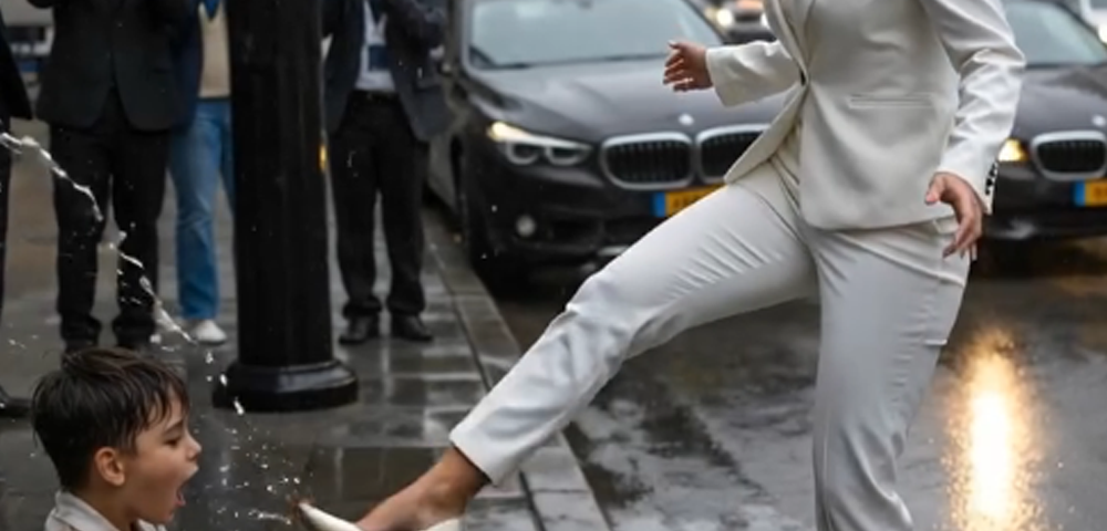 But Victoria had already reacted. She shoved the boy away — not hard, but hard enough for him to slip backward and fall into a muddy puddle. The crowd went silent. A camera clicked somewhere.