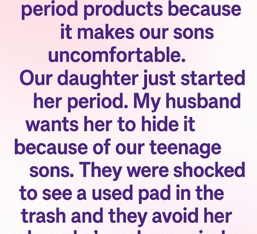 But instead of supporting her, my husband told her to hide it, because our teenage boys were “shocked” after seeing a used pad in the trash.